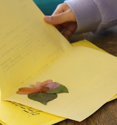 手作り工作クラブは、押し花で栞をつくっていました。前回のクラブの時間に葉っぱや花びらを拾ってきて、本の間に挟んでいたようです。