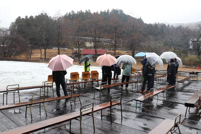 11日(火)第3学期の始業式の日の午後、児童のスケート実習に備えて、上サ・スケート場において教員向けのスケート研修会を行いました。生憎の雨模様でしたので、リンクで滑ることは出来ませんでしたが、施設の使い方、指導の手順、靴の貸し出しについて等、概ね1時間程度の研修でした。