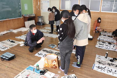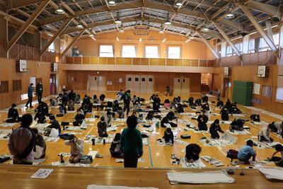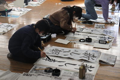 3学期はじめの行事は1月12日(水)、書きぞめの「競書会」でした。3年と4年が1時間目、5年と6年が2時間目に、体育館に集まり十分な間隔をとって行われました。大変寒い中でしたが、真剣に筆を動かす様子が見られました。2学年の児童が体育館に入っているとは思えないほど、静かな中で取り組めてました。