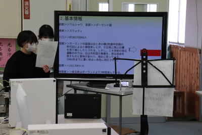 3年生は教室で、モニターに映る各クラブの代表者のパフォーマンスを見て、来年に胸を膨らませていたようです。(写真右)